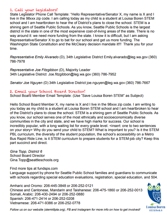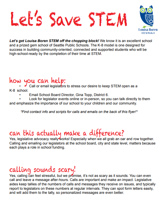 Now is the time to raise our voices and work to save STEM! Our PTA is working hard on putting together community and legislative advocacy plans. Read more here or below about how to get involved.